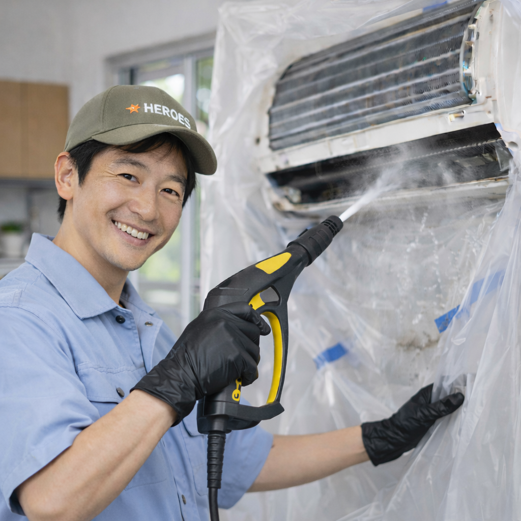 エアコンを取り付けて、「そのままでいいや。」なんて今どき思っている人いませんよね?実はエアコンは使ってる間にどんどん汚れが溜まり、中にはたくさんのカビがそして家族の健康被害になんてことがないように、ヒーローズがしっかりとエアコンの生活をトータルサポートします。